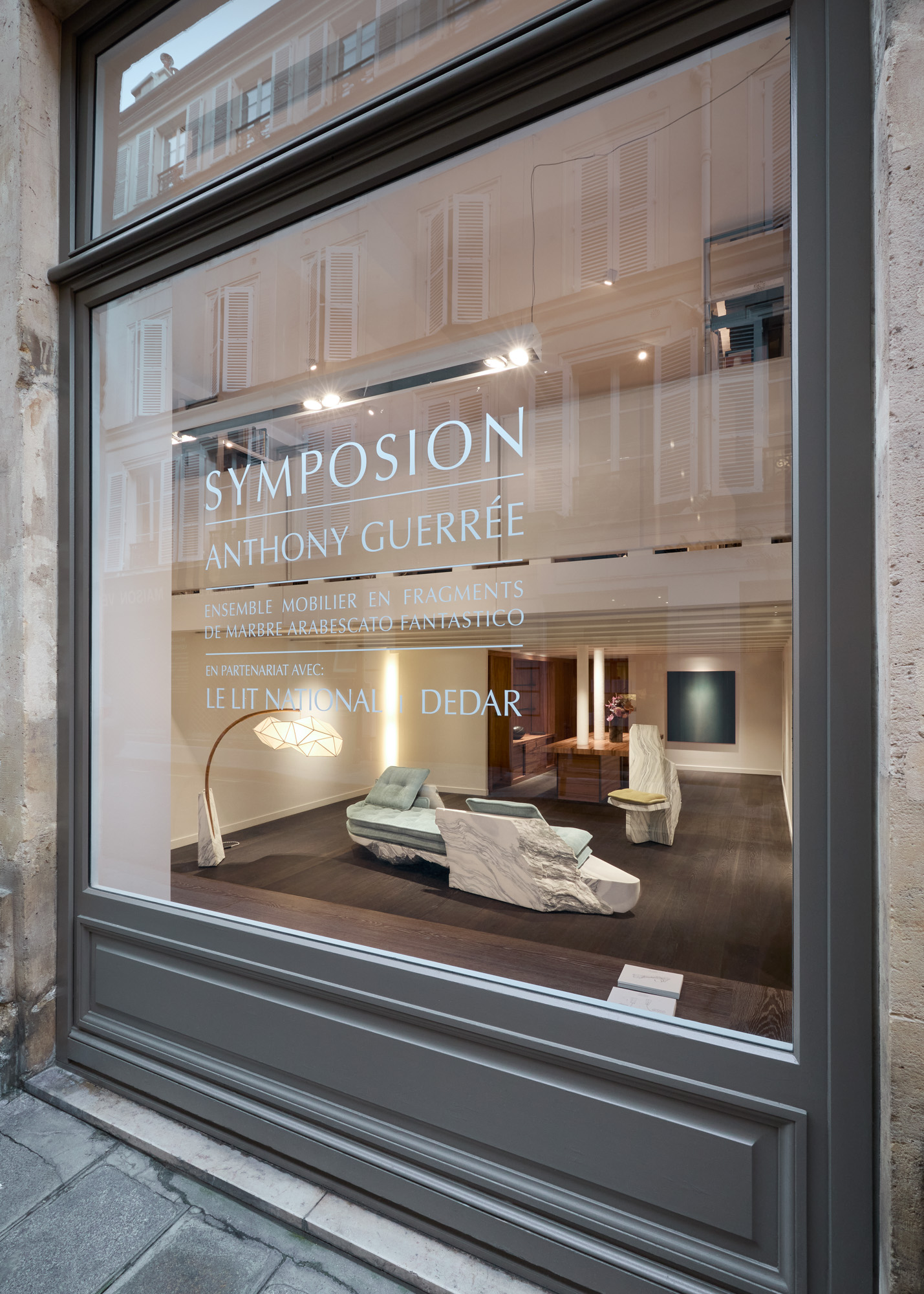 SYMPOSION takes shape from seven blocks of Arabescato Fantastico marble, among the last available of this quality. These fragments originate from an exceptional project carried out by Les Marbreries de la Seine for a suite at the Hôtel Crillon, designed by Karl Lagerfeld and Aline Asmar d’Amman. Set aside at the end of this commission, the marble retains the memory of a place, a gaze and a precise architectural context. SYMPOSION extends this existing narrative, offering a new reading of a material already inscribed with history.